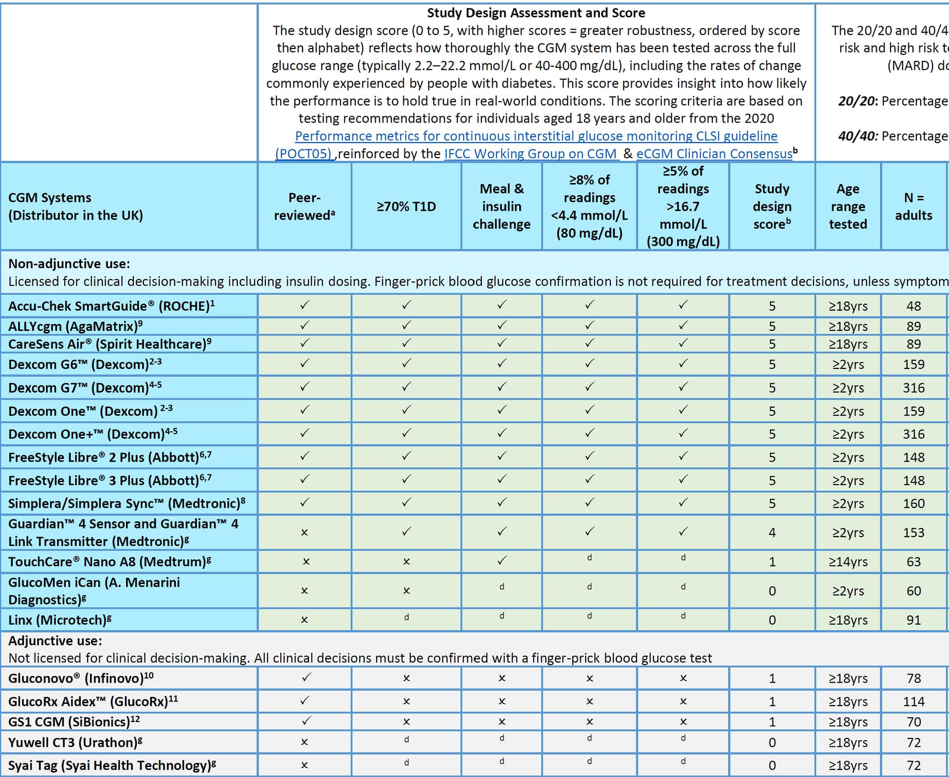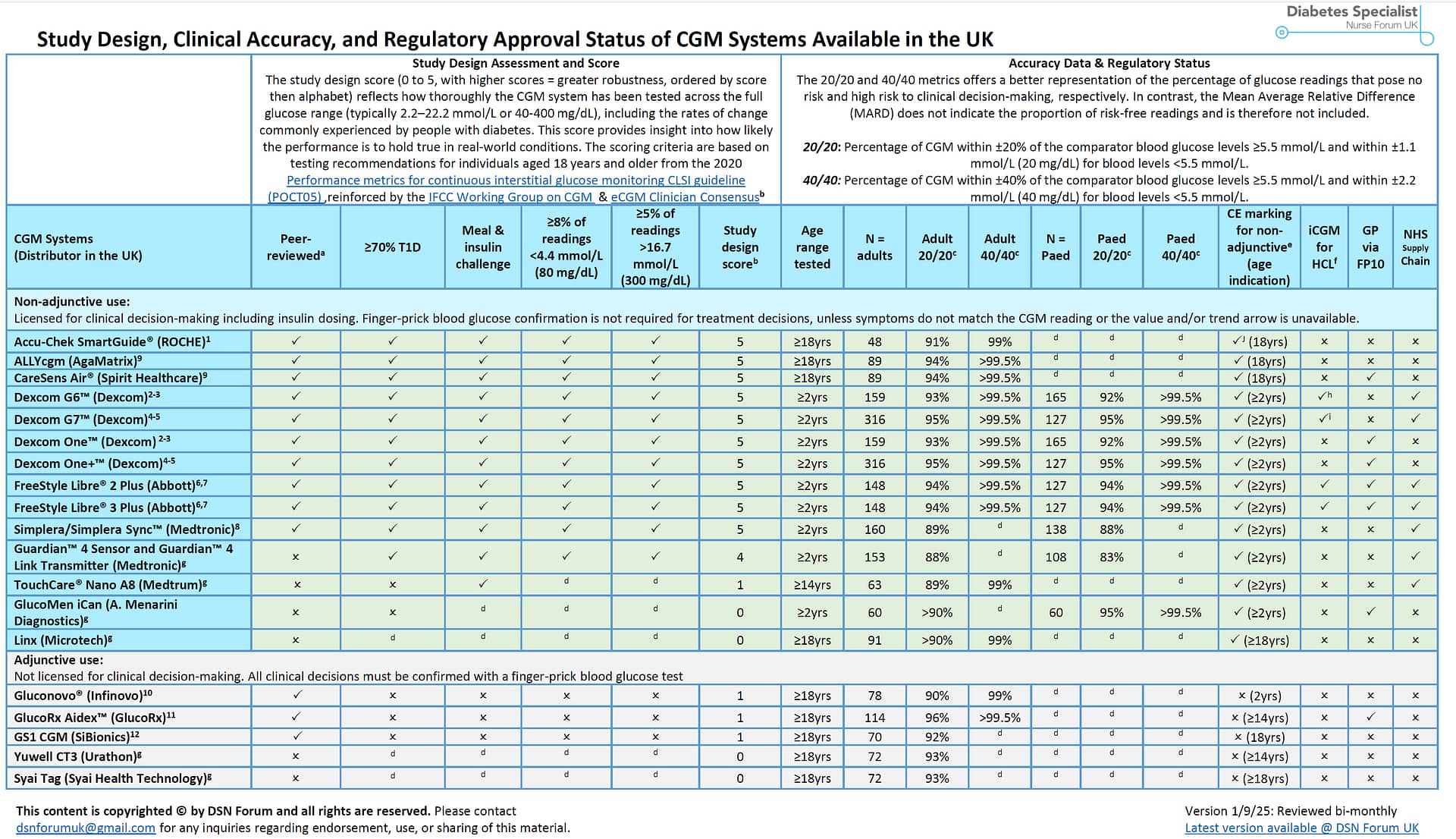 - Chart from the DSN Forum UK for CGM Devices (updated bi-monthly)