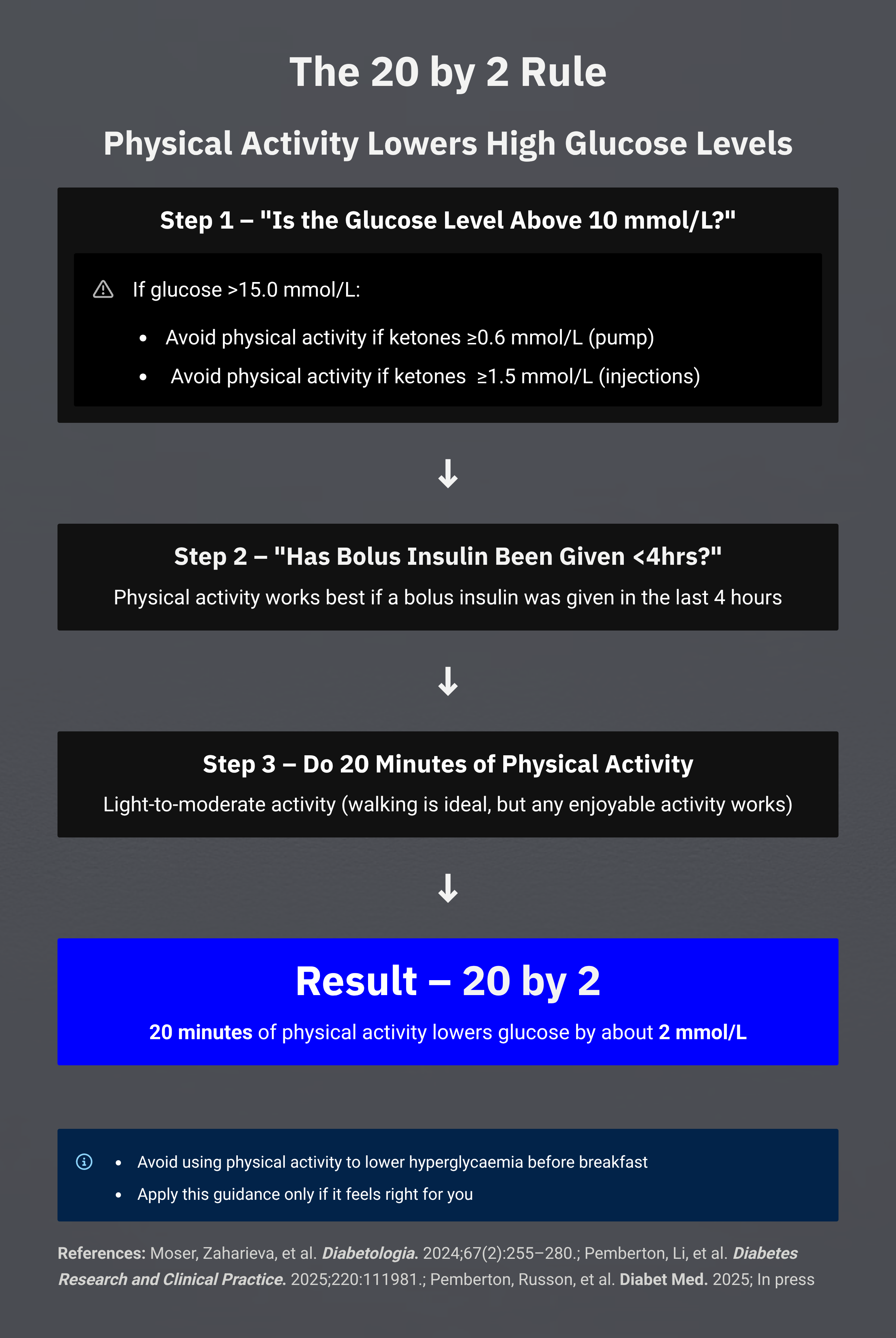 • Campbell et al, 2023 — SIT LESS trial: Breaking up sitting with light activity reduced hyperglycaemia without extra hypos.