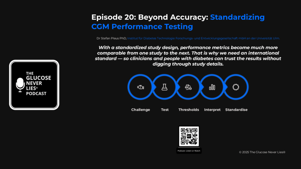In this episode, we go deep into the future of continuous glucose monitoring (CGM) standards. Dr. Stefan Pleus explains why the current FDA iCGM framework (2018) is no longer enough, what a robust international standard would look like, and why ISO standardisation by 2030 is essential if CGM is to: