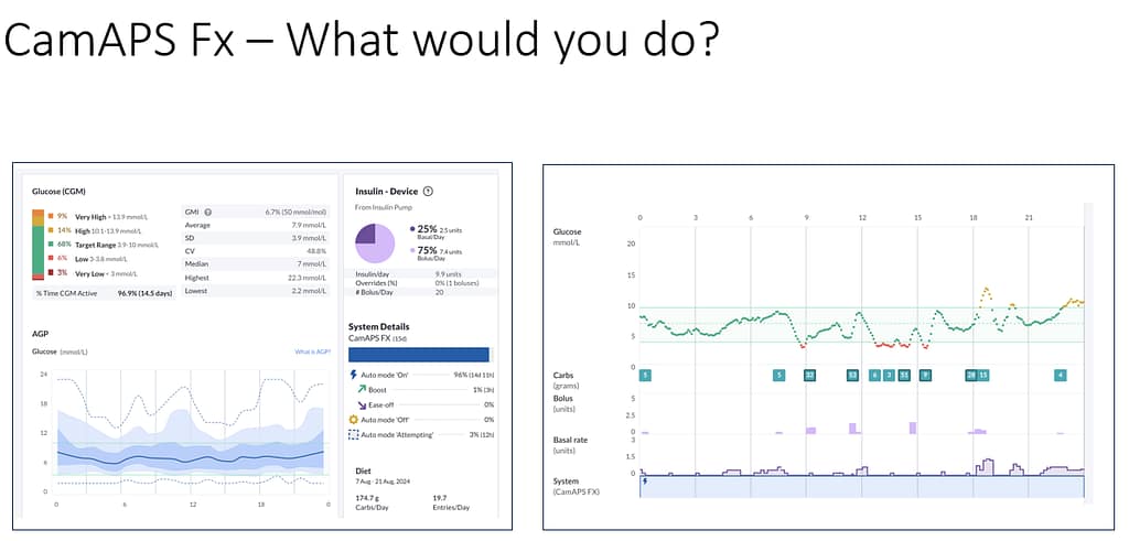 It’s also essential not to overlook basic nutritional needs. Using Schofield equations or equivalent calculators to estimate energy and protein requirements and having 40-50% as carbohydrate ensures the child is meeting growth targets. Balanced meals with appropriate macronutrient distribution are necessary for long-term health and for predictable glucose responses.