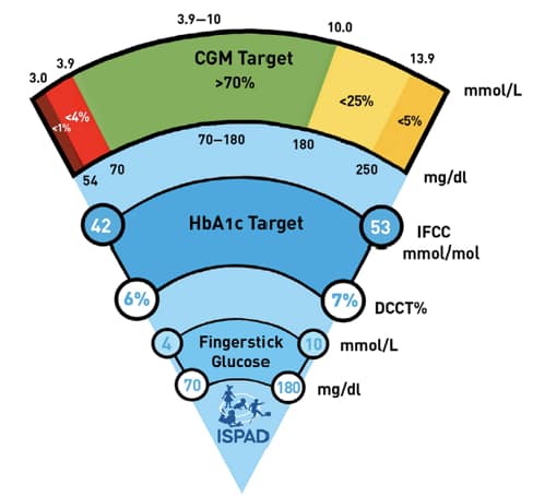 The goal in this age group is more than just “keeping up.” It’s achieving optimal control, defined by over 70% time in range (3.9–10 mmol/L), ideally over 50% in tight range (3.9–7.8 mmol/L) and a HbA1c of 6.5% or 48 mmol/mol. The guidelines recommend these levels as they reflect a glucose management that supports both physical health and cognitive development.