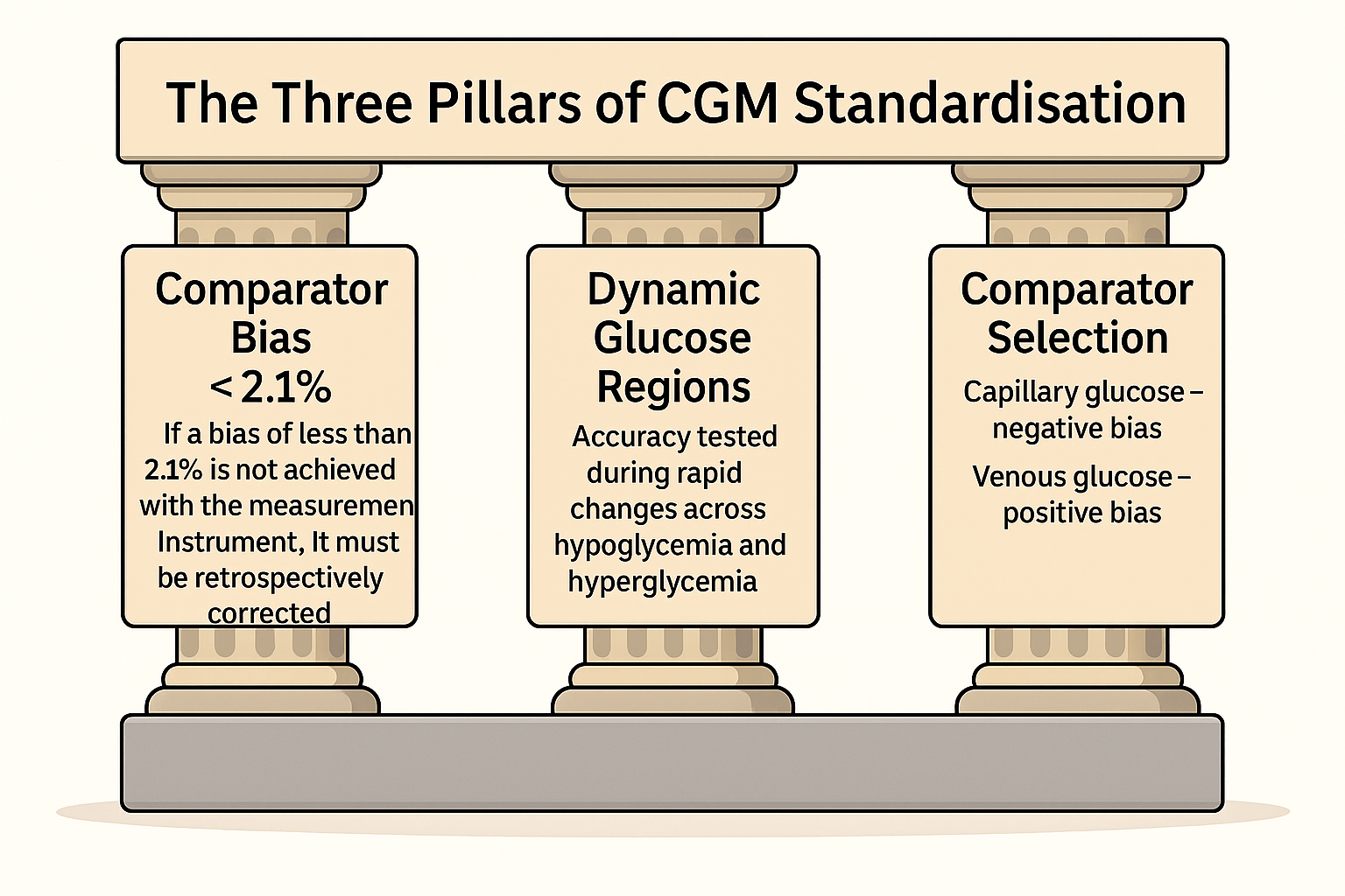 However, the key point here is standardisation . If the decision is to use venous glucose as the reference, then CGM systems must demonstrate a positive bias consistent with the datasets that established the associations with complications. If the decision is to use capillary glucose as the reference, then CGM systems must instead demonstrate a slight negative bias aligned with those same datasets.