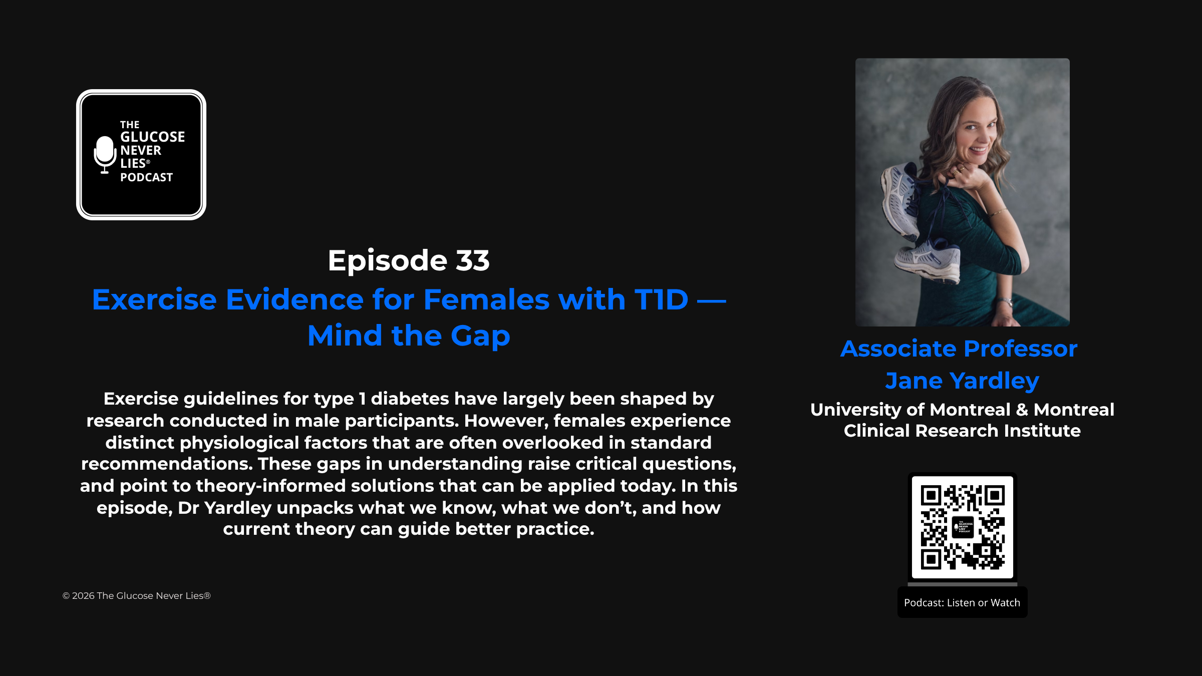 Professor Jane Yardley, a leading exercise physiologist in type 1 diabetes, bridges the research gap between male and female exercise physiology. This conversation breaks down how menstrual cycle phases affect glucose management, why fasted exercise offers unique advantages for females with type 1 diabetes, how muscle and bone health in your 20s and 30s determines functional mobility in your 60s and beyond, and why carbohydrate recommendations may systematically overestimate female athletes’ needs. This is the sex-specific exercise guidance that should exist in every clinic.