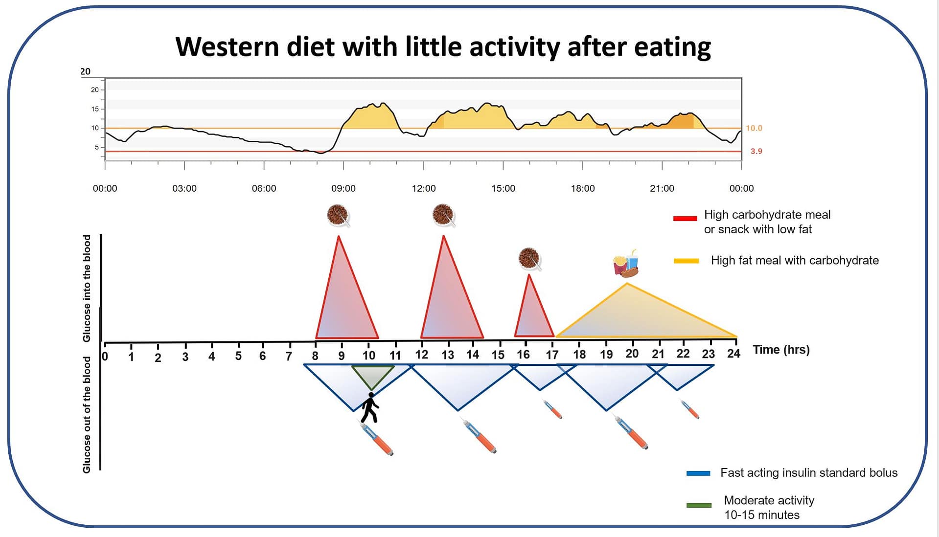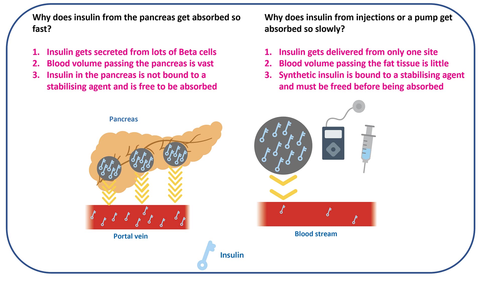 …and the slow absorption of insulin from injections or a pump.