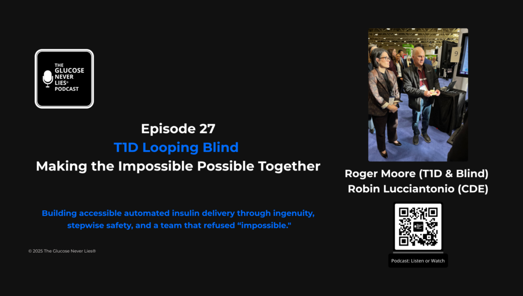 In this episode, Roger and diabetes educator Robin Lucciantonio walk through how they used the open-source Loop app with iPhone VoiceOver, a stepwise rollout (simulator → saline → insulin), and a handcrafted tactile pod-filling station to make AID genuinely autonomous.
