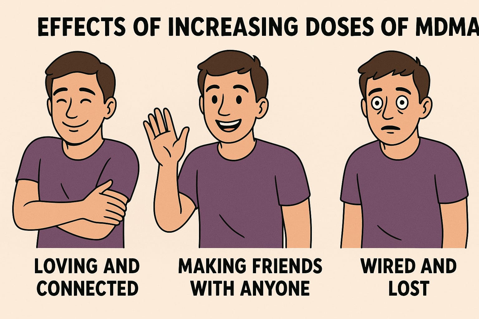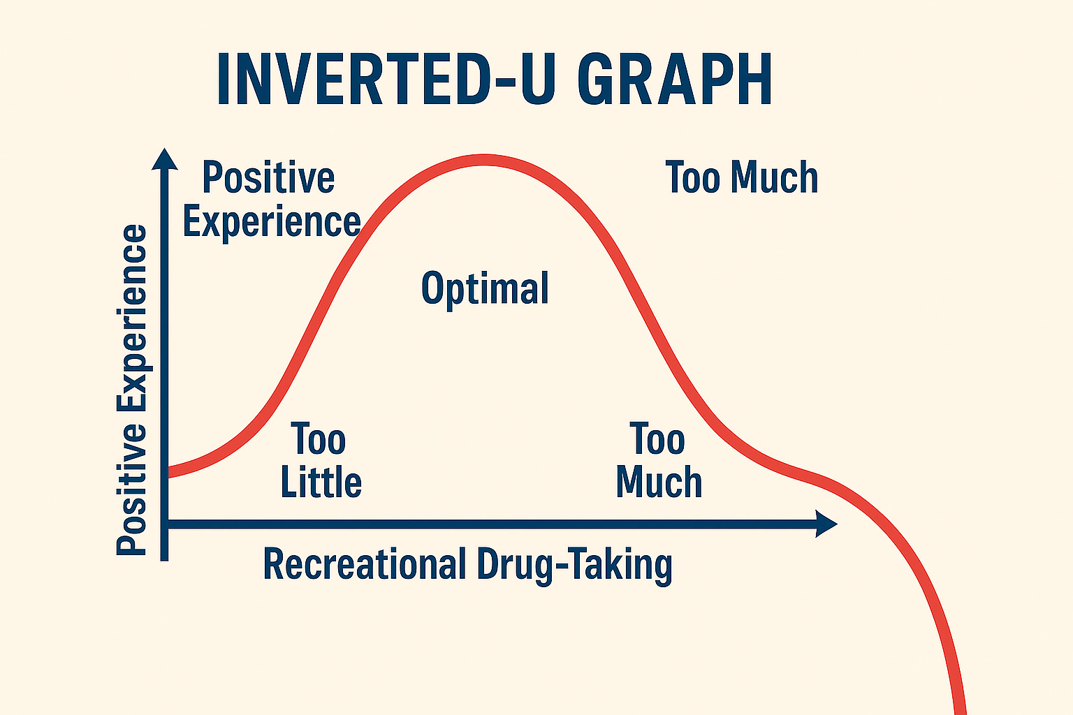 Each of these chemicals operates on an inverted U-curve meaning that too little may lead to fatigue or low mood, a moderate amount might enhance energy and sociability, and too much can cause overstimulation, anxiety, or even danger. The curve is different for everyone and shifts depending on your current physical and emotional state. Well-rested and calm? You might tolerate a bit more. Tired, anxious, or already wired? Even a small amount could tip you into a bad experience.